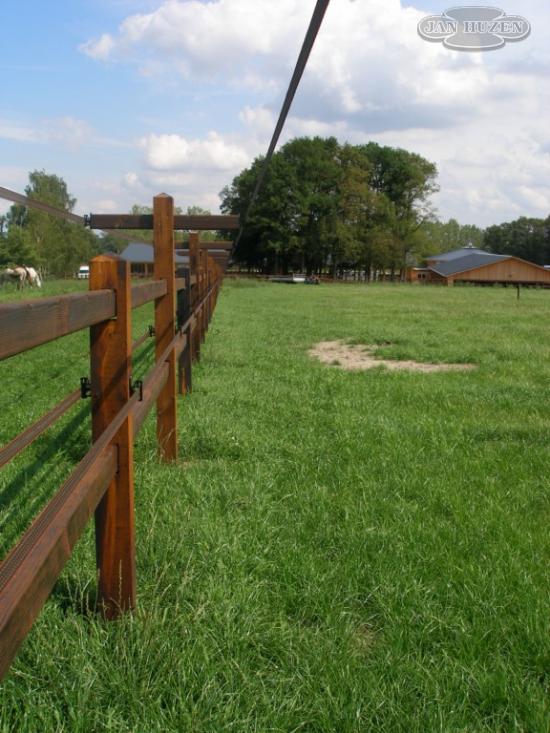 De Doorsteek Omheining Pia is speciaal ontwikkeld voor afscheidingen tussen weides of paddocks. En het blijft in dezelfde stijl als de Doorsteek Omheining.